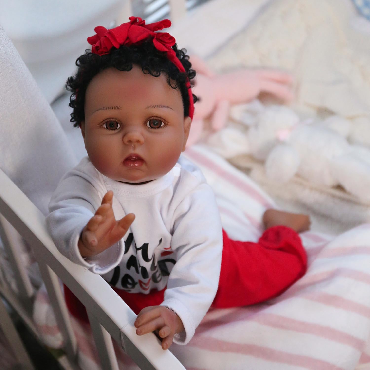 WOOROY Reborn Baby Dolls - Black, 22 inches Newborn African American Realistic Lifelike Baby Dolls for Kids Age 3+