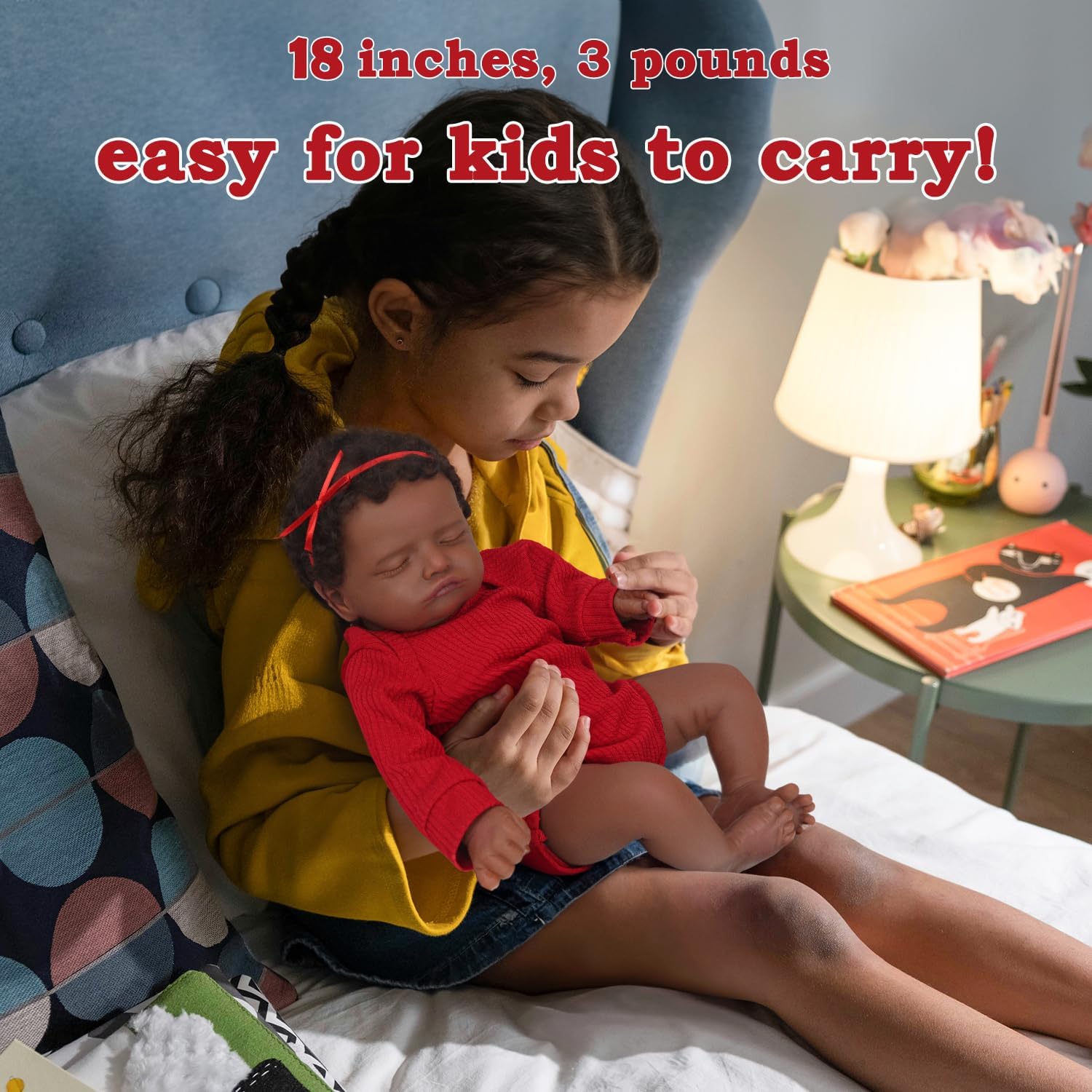 WOOROY Reborn Baby Doll - Christmas & Birthday Gift, Gift Ideas, Brown Skin, 20" Cloth Body Doll, African American & Black skin, Gifts for Kids 3+